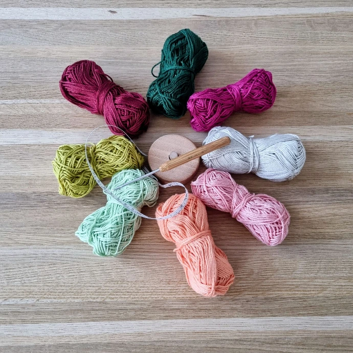 Uniquement un crochet, du fil et mes mains. Chaque pièce est entièrement réalisée dans mon atelier.